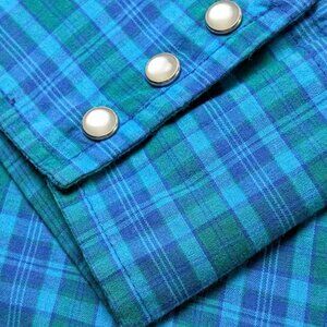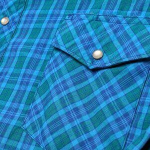 VTG Rustler by Wrangler Western Shirt Mens Size XXL Blue Plaid Pearl Snap Rodeo