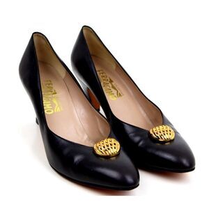 VTG SALVATORE FERRAGAMO GRAY GENUINE LEATHER 3" HEEL CLASSIC PUMP SHOES Sz 9 AA