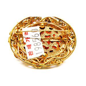 This rare vintage Samo brooch features an oval-shaped flux amber main stone surrounded by multi-colored stones and goldtone leaves. The brooch is signed with the number 652 and measures 1 7/8" in length. The setting style is flush, and the base metal is goldtone. The brand is Samo, and the country of origin is unknown. This brooch would make a beautiful addition to any jewelry collection, and its unique design is sure to catch the eye. Wonderful gift.