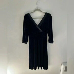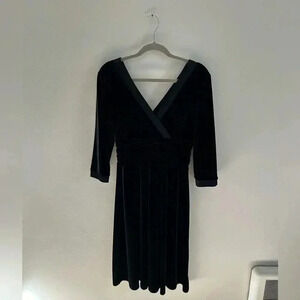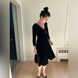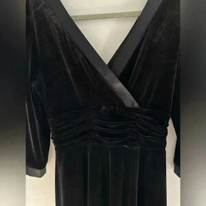 VTG SANDRA DARREN classic ruched V Neck blacktie velvet a line midi dress SZ 10.