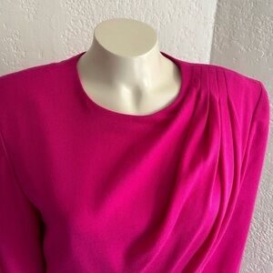 VTG SEAASI berry pink dress. SZ 12. Measurements: underarm to underarm 18”, sleeves 22”,waist 15”, length 39”. 100% wool . Lining 100% acetate. As is : a few holes ( see last pictures) . Otherwise vintage condition. Berry color. Zipper on the back . Bin 62