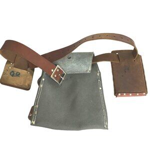 Authentic vintage Sears Craftsman “Tool Touch” leather tool belt rig, featuring multiple marked pouches and a hammer holder. Heavy-duty top grain cowhide with reinforced rivets and steel hardware, built to last.