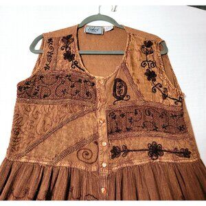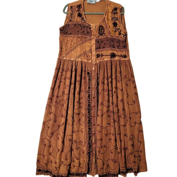 VTG SELECT Womens Maxi Dress 1X Sleeveless Button Up Embroidered Holiday Dress