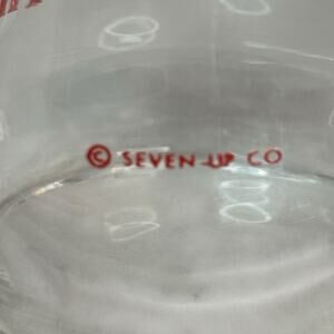 This listing is for TWO vintage 7UP "THE UNCOLA" upside-down drinking glasses, and each of the glasses is in GREAT previously used condition. The sides, bottoms, and lips of the drinking glasses are smooth and free of SCRATCHES, CHIPS, and CRACKS. The glass of the drinking glasses has light wear to the inside, bottom, and sides from age and previous use (see photos). The drinking glasses are CLEAN! The colors of text along the sides of the drinking glasses are CRISP and VIBRANT!