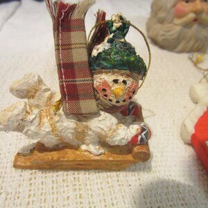 3-1997 SNOWMAN ON SLED W/FABRIC SCARF 3'' LONG 355 T 1.5'' D