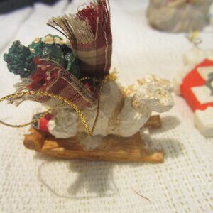 VTG SET OF 4 CHRISTMAS ORNAMENTS, CERAMIC OR RESIN MATERIAL