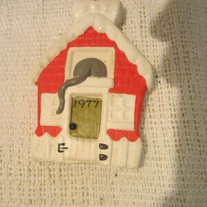 1-SCHOOLHOUSE WITH MOUSE HAND PAINTED 1977 3.75'' T 2.5'' W