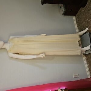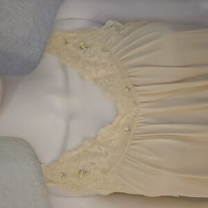 VTG SHADOWLINE 1960s Pale Yellow Floral Embroidered Lace Satin Maxi Nightgown