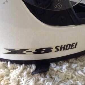 VTG SHOEI X8 Aero Silence Motorcycle Helmet; Crotch Rocket, Moto-Cross Racing. This is a great helmet at a great price; they run over $400 retail. Size: X, Scratch Resistant, Ultra Hard, 2mm Thick, 3D Curved Shield; Gloves, Dust Bag, Tools. This has been used; some "scratches or black marks" on helmet. Overall GREAT condition.