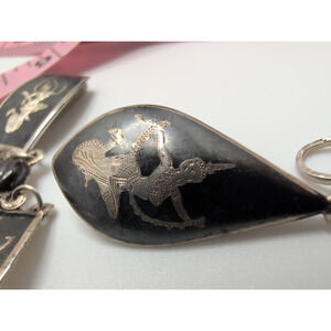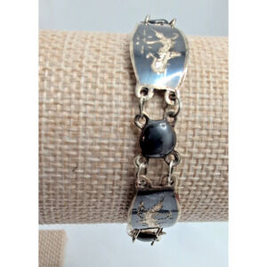 VTG SIAM 925 Sterling Silver Dancers Set: Bracelet & Screwback Earrings +1