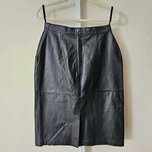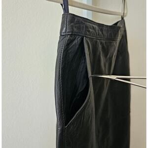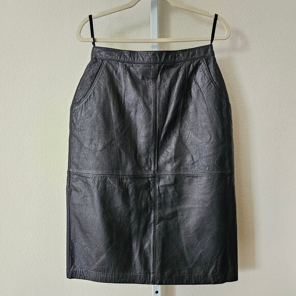 VTG SILVERLEAF Black Leather Pocket Snap Button Zipper Pencil Midi Skirt Sz 12