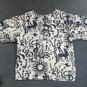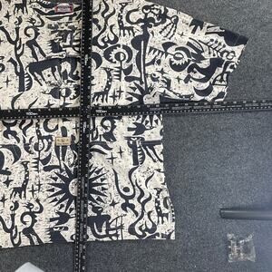 VTG SKSport XIU XIAN Abstract Tribal Print Shirt Frog Button Closure L