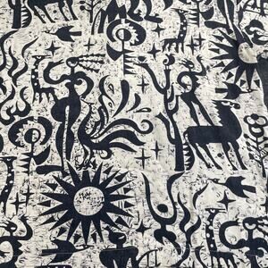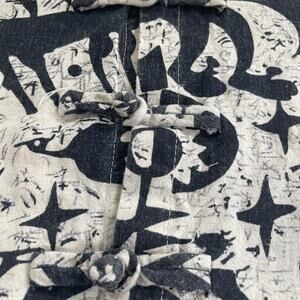 This breathable shirt features bold tribal art and frog knot buttons—a standout find for collectors and vintage lovers. Lightweight and funky!