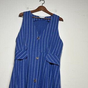 VTG Denim Striped Maxi Dress Women OS Blue 90s Casual Beach Summer Retro good condition