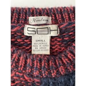 VTG SOH Chunky Sweater Men S Red Blue Cable Knit Cabincore Grandpa Handmade