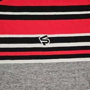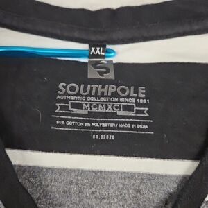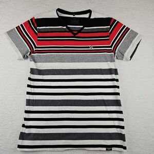 VTG SOUTHPOLE Mens White/Grey/Red Striped Shirt S/S Sz 2XL *Fits L* V Neck