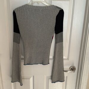 VTG SPIEGEL Gray Ribbed Sweater with Colorful Patchwork Bell Bottom Sleeves SZ L