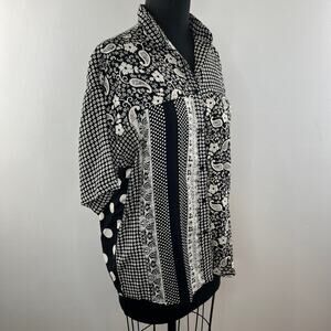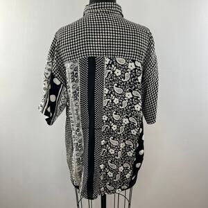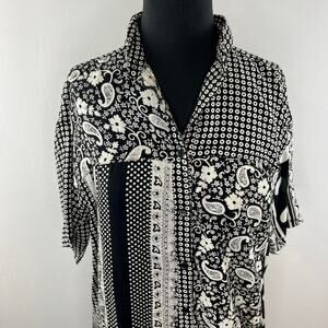 VTG SPORTIQUE Black White Mixed Print Short Sleeve Button Down Shirt Size M NEW