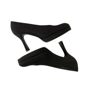 Vintage STUART WEITZMAN Women size 8 Black Fabric Pisa Platform Pumps in excellent preowned condition - only worn once and since been stored away in box.