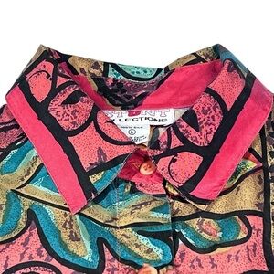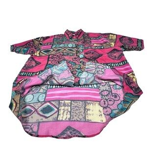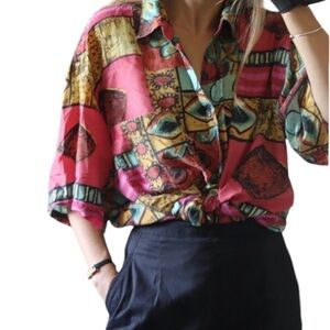 VTG STUNT COLLECTIONS Abstract Pattern Short Sleeve 100% Silk Shirt Women's L