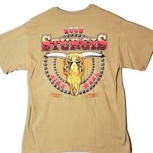 VTG STURGIS MENS TEE T-SHIRT LG COW SKULL BIKER WESTERN COWBOY TRIBAL HARLEY