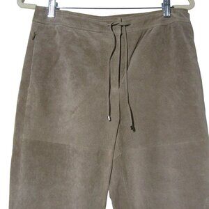Vintage suede leather tan-beige pants from the 90s. BOHO Western Festival Yellowstone high waist style, size 8. Perfect for women who love retro fashion.