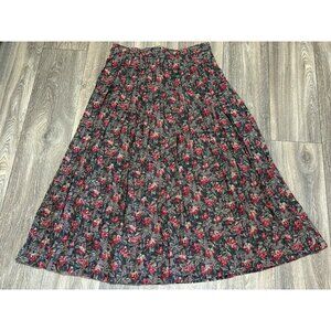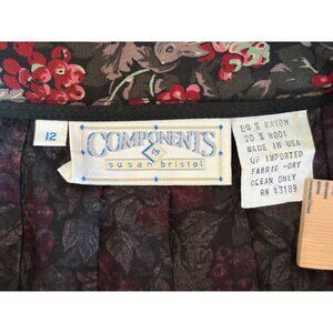 VTG SUSAN BRISTOL PLEATED MAXI SKIRT BERRY BUNNY LEAF PRINT FULL SIDE BUTTONS 12