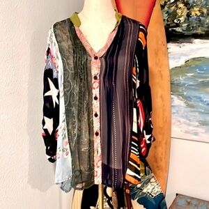 VTG Sacred Threads, Oversized Boho Buffon-Up Blouse, Such a COOL Design, Size S