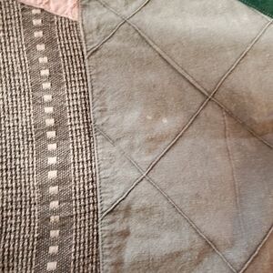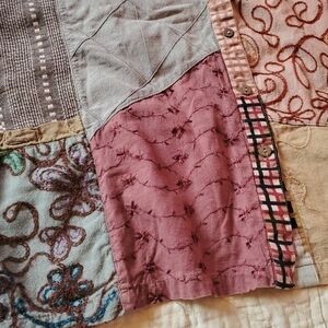 patchwork top. dolman sleeve. buttons down front. pockets. Cotton.