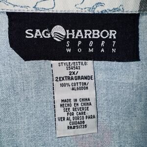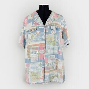 VTG Sag Harbor 2X Short Sleeve Retro Travel Postcard Print Button Shirt Collared