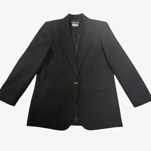 VTG Sag Harbor Womens Wool Blazer Size 10 Black 80s 90s Boxy Grandpa Minimalist