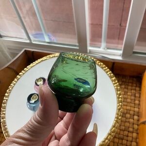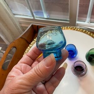 Vintage Saki Cordial Multi Colored Etched Shot Glasses 6 Total. Made in Korea. Beautiful Preowned Condition All are in Pristine Condition. No Chips/Flaws.