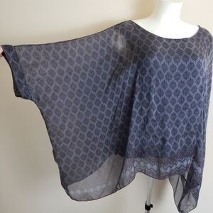 Saks Fifth Avenue Womens Sheer Lined Dolman Boho Lagenlook Blouse. Blue Gray. Size Small. Lining and sheer overlay are all one piece sewn together at shoulder seam.
