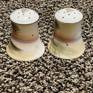 VTG Salt Pepper Shakers 3" Japan Hand Painted Nature Scenes Porcelain Multicolor