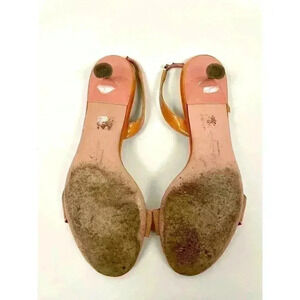 Preowned. Signs of wear. NOTE: Elastic slingback is stretched out, material cracked. See pics. Small peels on sides. see pics.