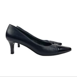 VTG Salvatore Ferragamo Navy Dual Texture Patent Cap Toe/Leather Long Almond Toe Heels Pumps Size 9