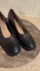 VTG Salvatore Ferragamo Pump Black Textured Leather Almond Cap Toe BlockHeel 8.5