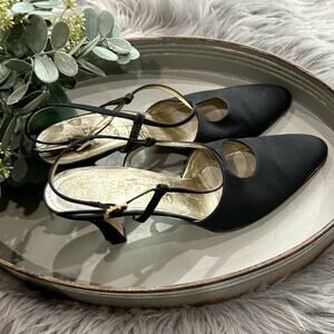VTG Salvatore Ferragamo Women's Black Nylon Strappy Heels Size 8.5 Made In Italy