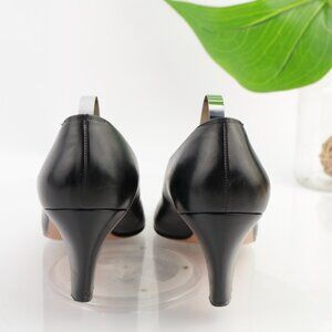VTG Salvatore Ferragamo Womens Pump Size 8.5 B Black Gold Button Dress Shoe Heel
