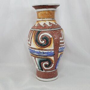 VTG Sandstone Textured Vase 6" Hand Painted Southwest Design Cream, Tan & blue