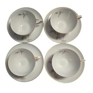 This is a charming set of 4 vintage Sango Japan cups and saucers one with a chip as pictured, perfect for adding a touch of elegance to your tea time! Each piece features a delicate pastoral design with pink roses and a luxurious gold rim. These sets are in excellent vintage condition and ready to be enjoyed! They would make a delightful addition to any china collection or a thoughtful gift for a special someone. Don't miss the opportunity to own a piece of vintage charm!
