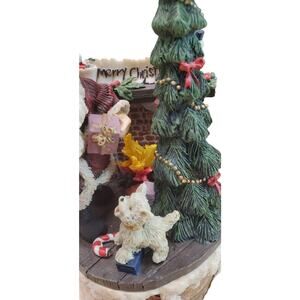 Vintage 1998 Santa Claus Christmas Tree Figurine (NOT musical, Fireplace logs Light up around base of chimney) Battery Operated with 2AA Batteries (NOT included). Resin. NO BOX