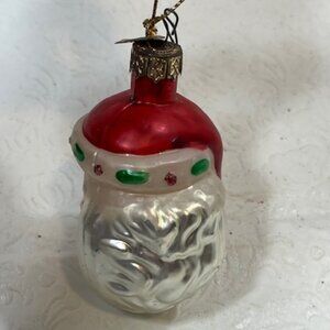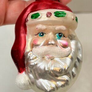 VTG Santa Head Hand Blown Glass Glitter Christmas Tree Ornament 2"x3"