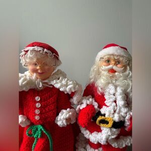 VTG Santa Mrs. Claus Crochet Dolls Festive Christmas Cheery Retro Vintage Red