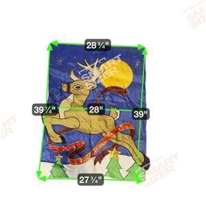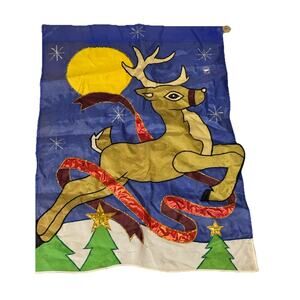 Bring nostalgic holiday charm to your home with this vintage double-sided Santa’s Reindeer flag. Featuring a bold, colorful leaping reindeer design with a full moon and festive Christmas trees, this piece makes a perfect addition to vintage Christmas décor, yard displays, or holiday collectors.