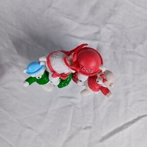 This vintage Santabear Christmas ornament from 2002 is a beautiful addition to any holiday decor. It's dated 2002 on Santabear's hat and he's standing with Missy, his wife, and their two children, Berry and Belle. This is a super cure ornament made of resin and measures about 3.5 inches tall by 3.75 inches wide. This is new in the box, but the box is not in nice shape. It has a sticker stuck on the front and black markings all over the outside fo the box. The ornament itself is in great shape because it's been protected by a formed foam inside the box. Ignore the box and focus on this adorable ornament that is now part of the iconic Marshall Field's history. Thanks for looking!