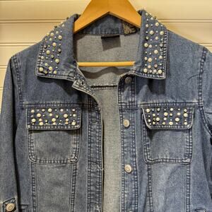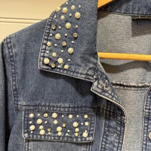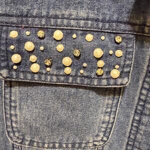 VTG Sara Studios Pearl Embellished Denim Trucker Jacket Size S