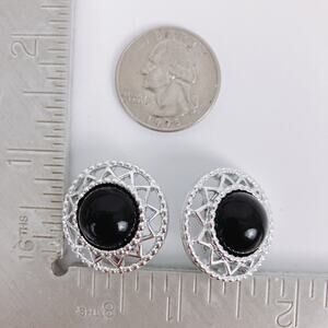 VTG Sarah Coventry Mod Atomic Black Silver Tone Clip On Earrings 1960s Space Age