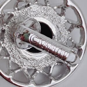 Sarah Coventry captured the bold simplicity of the mid-century with these geometric clip-ons, where glossy black cabochons sit framed in atomic starburst silver tone. Their graphic contrast and sculptural form echo the space age mood.