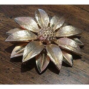 VTG Sarah Coventry Satin Petals Brushed Gold Tone Daisy Brooch Pin 1970